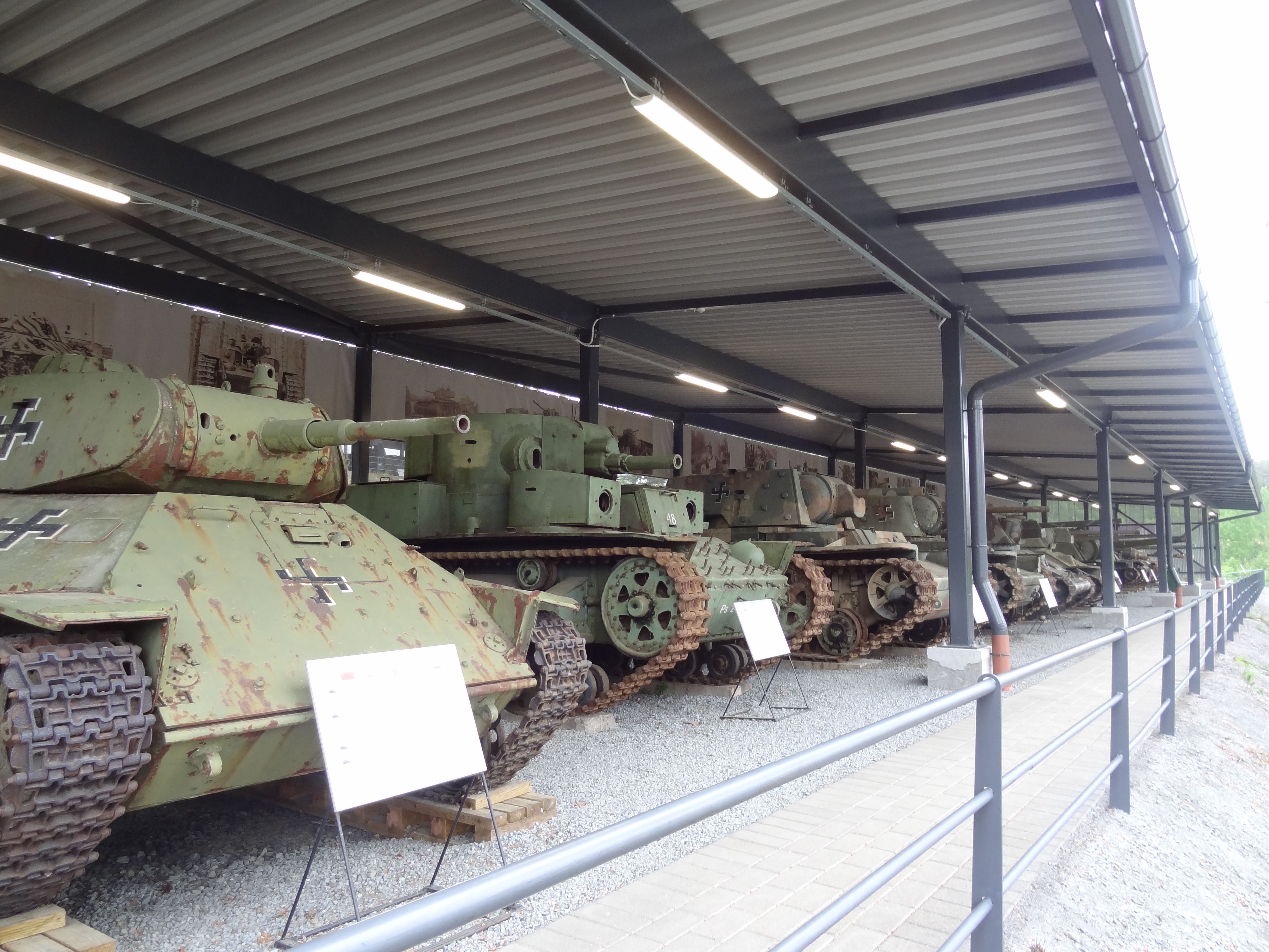 Ulkonäyttelyalueella kalustolle ja museovieraille suojaa antaa kaksi museoajoneuvokatosta, joissa esillä oleva kalusto on ryhmitetty aikajärjestykseen 1920-luvulta nykypäivään. Ulkonäyttelyalueelta löytyy lisäksi sodan ajan mallin mukaan rakennettu panssarintorjuntajoukkueen tukikohta tuliasemineen ja korsuineen sekä harvinainen sodanaikainen panssarijuna. Museon vanhin sisänäyttelytila ”Moottorihalli” tarjoaa tekniikasta kiinnostuneelle kävijälle mielenkiintoisia hetkiä.