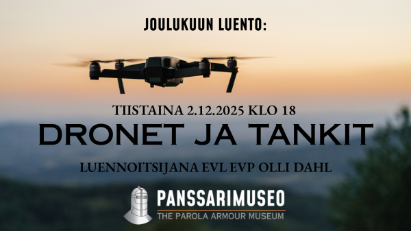 Panssarimuseon joulukuun luennon aiheena on "Dronet ja tankit". Luennoitsijana Evl evp Olli Dahl Lue lisää