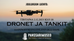 Panssarimuseolla joulukuussa pidettävän luennon aiheena on "Dronet ja tankit". Luennoitsijana Evl Evp Olli Dahl. Luento pidetään Panssarimuseon päänäyttelyhallissa. Voit osallistua kuukausittain järjestettäville luennoille myös etänä. Pyydä linkki Panssarimuseon toimistolta sähköpostitse (toimisto(a)panssarimuseo.fi) viimeistään luentopäivänä klo 16 mennessä. Kahvio Tankkitupa palvelee luentopäivinä klo 17-20. Nähdään museolla!